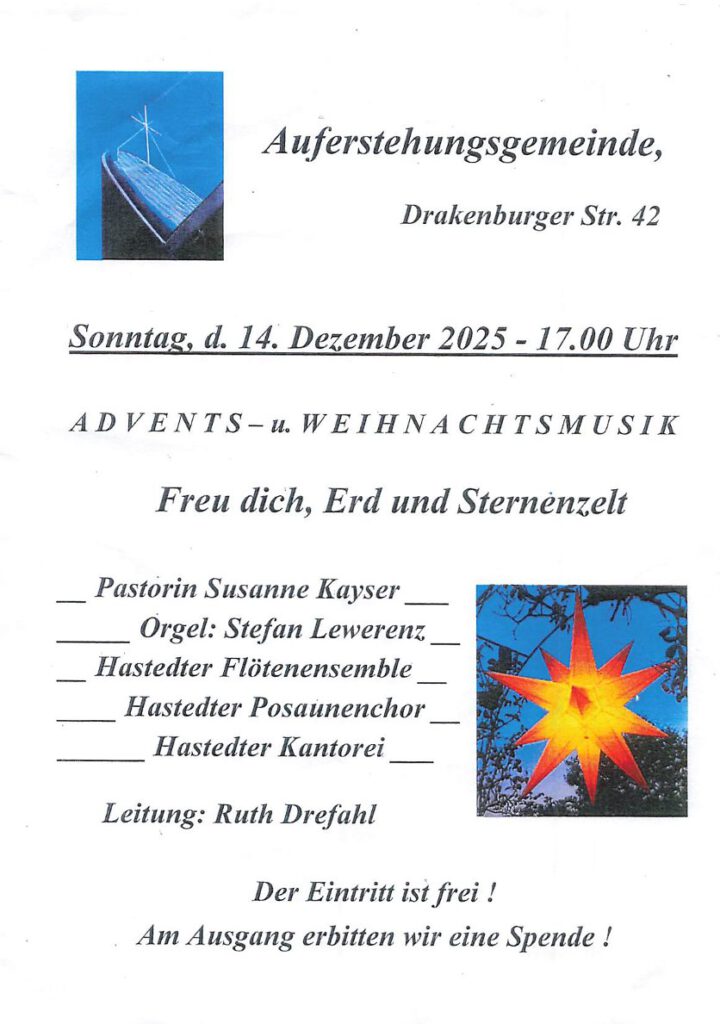 Sonntag, d. 14. Dezember 2025 – 17.00 Uhr – Auferstehungsgemeinde